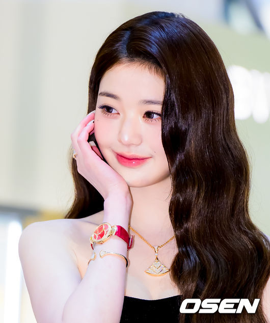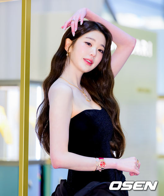 장원영은 지난 4일 서울 신세계백화점 강남점에서 열린 럭셔리 주얼리 브랜드 불가리(BVLGARI)의 ‘홀리데이 디바스 드림’ 팝업 포토월에 참석해 한겨울에도 꽃처럼 피어난 ‘흑장미 비주얼’로 시선을 사로잡았다.