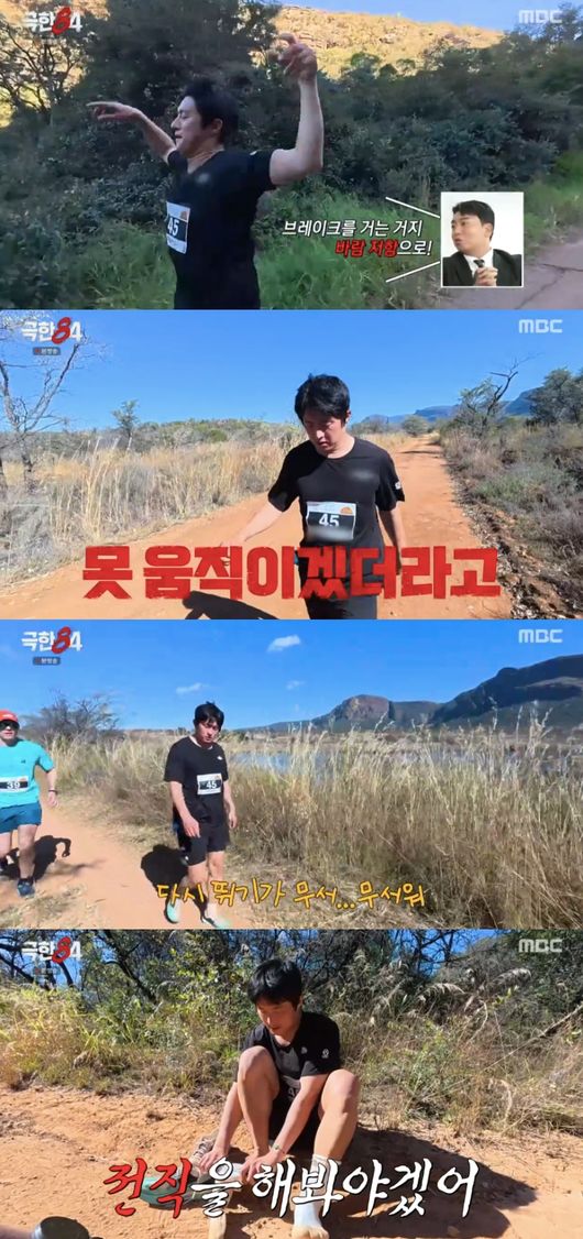 더 심한 급경사 등장에 질주하던 기안84는 평지를 만났지만 “와 내리막 멈추고 싶은데 몸이 무게가 탔으니까 안 멈춰진다. 조금만 걸어야겠다. 이래서 페이스 조절을 하라는 건가봐”라며 힘들어했다.