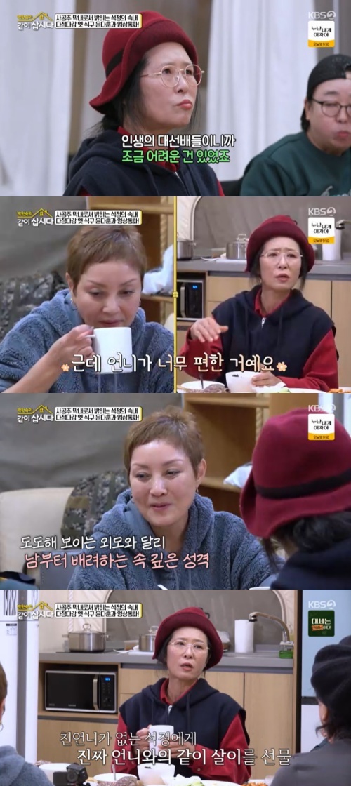 8일 오후 방송된 KBS 2TV 예능 프로그램 '박원숙의 같이 삽시다'에서는 배우 황석정을 비롯해 박원숙, 홍진희, 가수 혜은이 등 '사공주'가 저녁 식사를 함께했다.