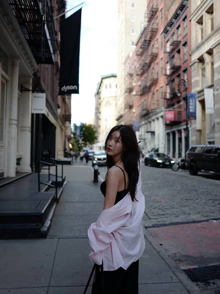 거리에서 촬영된 컷에서는 긴 생머리가 바람에 흩날리는 순간까지 그대로 담기며 시네마틱한 결을 살렸다. 무심한 듯 카메라를 바라보는 눈빛에 ‘걷기만 해도 화보’라는 말이 딱 어울리는 장면을 만들었다.