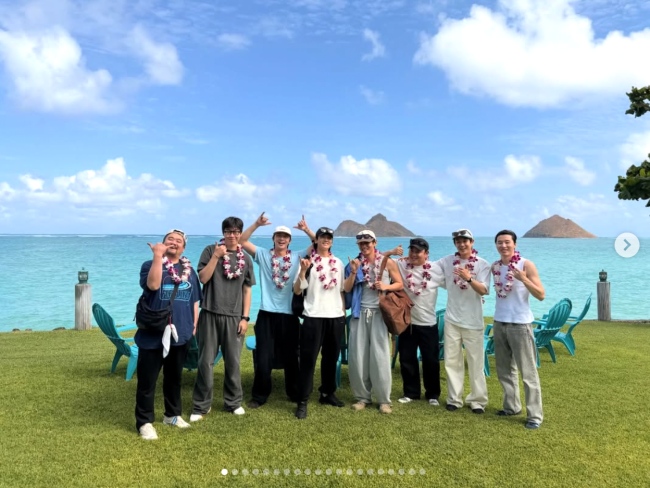 이들은 하와이 휴가를 즐기고 있었다. 똑같은 꽃 목걸이를 걸고 아름다운 풍경을 배경으로 인증 사진을 남기는가 하면, 바다와 리조트에서 수영을 즐기며 휴식을 취하기도 했다. 사진만 봐도 화기애애하고 시끌벅적한 분위기가 고스란히 전달될 정도르 즐거워 하는 멤버들이었다. 오랜만에 완전체로 뭉쳐 팬들 역시 뜨거운 반응을 보이고 있다.