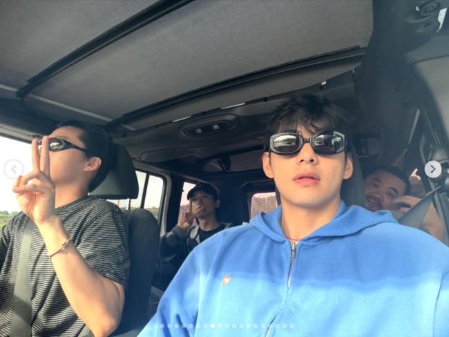 공개된 사진에는 뷔의 연예계 사모임인 우가팸 멤버들의 모습이 담겨 있었다. 배우 박서준부터 최우식, 박형식, 가수 픽보이까지 완전체 모습이 담겨 있었다.