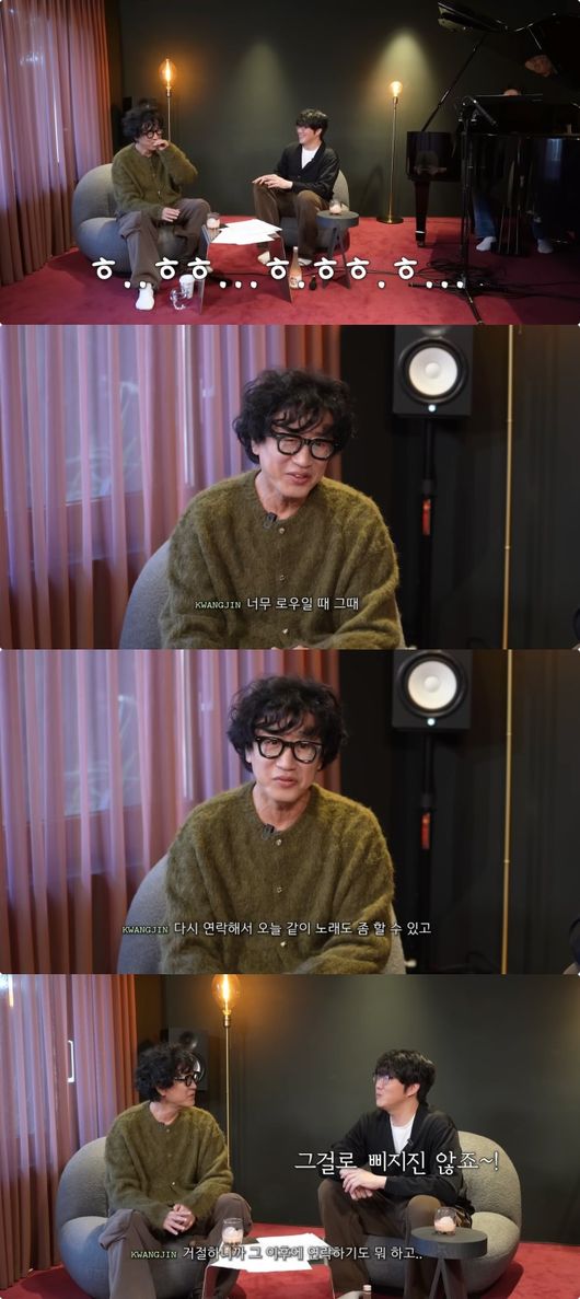 김광진은 “그러니까”라며 당황한 듯 웃었다. 그러면서 “너무 로우일 때, 그때 시경이가 몇 번 저한테 전화했는데 거절하니까 그 이후에 연락하기도 뭐 하고. 그래도 내가 또 미안하니까 그래서 연락도 못하고 있다가, 다시 연락해서 오늘 같이 노래도 좀 할 수 있고 기분이 되게 좋다”라고 소감을 말했다. 성시경은 “그걸로 삐지진 않죠”라고 웃으며 덧붙였다.