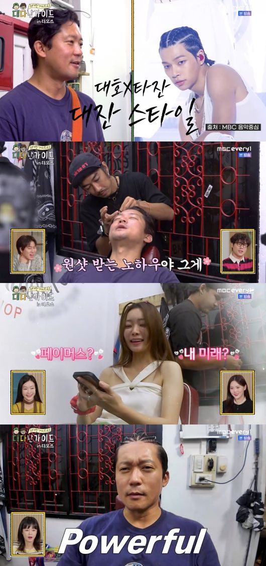 이후 헤어스타일이 완성되자 김대호는 “타잔이 되어 있을 줄 알아쓴데 진짜 타잔이 됐다”라면서도 만족해했다. 액세서리까지 추가하자 김대호는 반항아 모습을 선보이며, 일탈을 즐겼다.