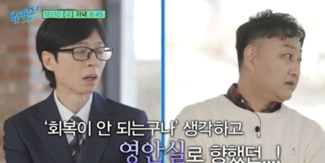 유재석은 김수용을 소개하며 “생사의 고비를 넘기고 돌아온 기적의 수드래곤”이라고 말한 뒤, “매니저에게서 ‘김수용 형님 심정지 왔다’는 전화를 받고 말을 잇지 못했다”고 당시를 떠올렸다.