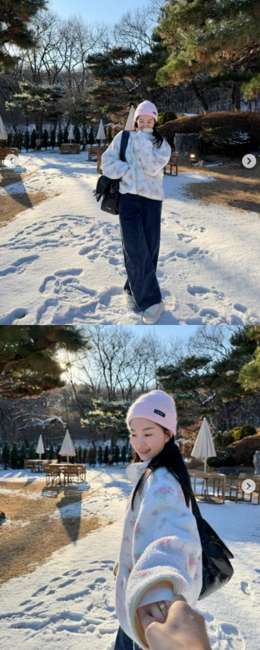 사진 속 류이서는 새하얀 눈밭을 배경으로 카메라를 응시한 채 환하게 미소 짓고 있다. 따뜻한 파스텔톤 플리스 재킷과 니트 비니를 착용해 포근한 분위기를 더했다.