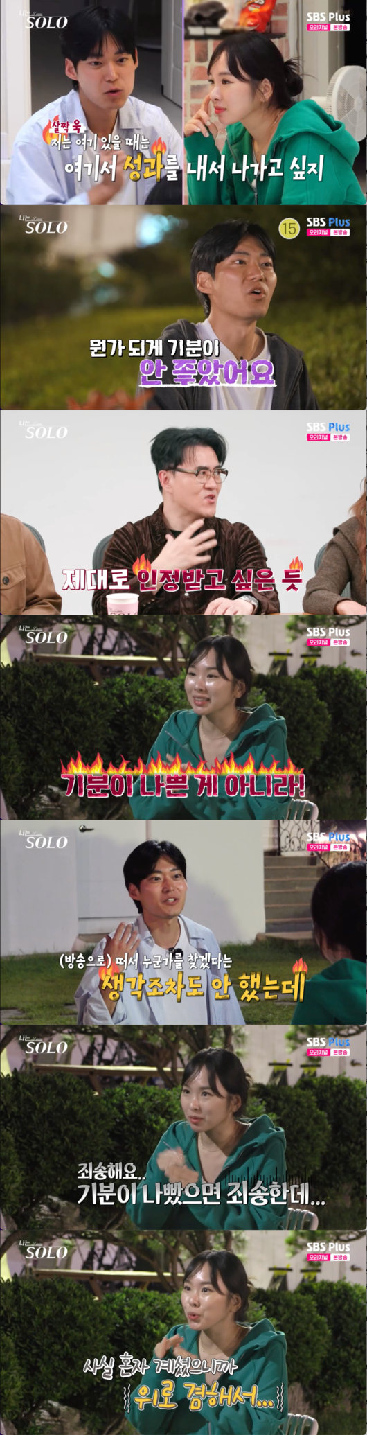 [OSEN=박근희 기자] '나는 솔로' 영식과 영자의 일대일 대화 중 영식이 영자의 사소한 위로에 불편했던 감정을 토로하며 충돌하는 모습이 포착됐다.
