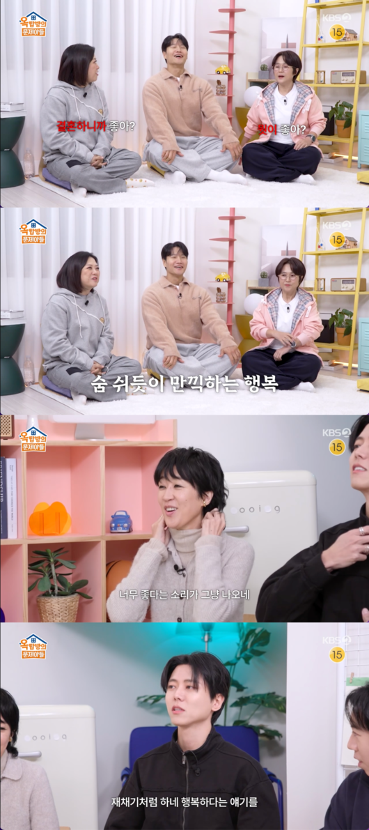 [OSEN=박근희 기자] '옥탑방의 문제아들’가수 김종국이 동료들의 결혼 관련 질문에 행복감을 숨기지 못했다.