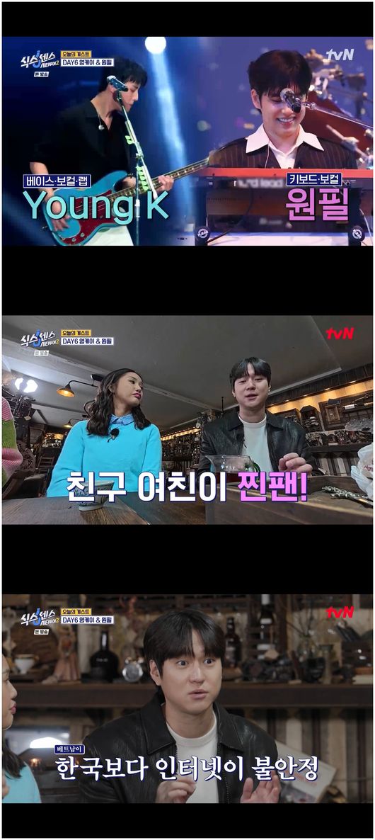 고경표는 “제 친구의 여자친구가 여행을 베트남으로 같이 갔다. 그런데 데이식스 엄청난 팬이다. 거기는 인터넷이 불안정해서 같이 콘서트 티켓팅을 했는데, 셋이서 다 실패했다”라며 마찬가지로 데이식스의 인기를 언급했다.