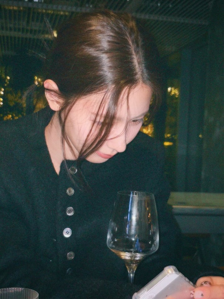 턱을 손에 괴고 있는 사진에서는 길게 떨어지는 목선과 또렷한 이목구비가 돋보여, 조용한 레스토랑 한 켠을 화보로 만든다.