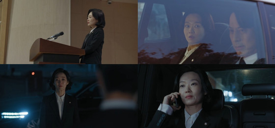 무엇보다 최종화인 10화에서는 나은재다운 엔딩이 눈길을 끌었다. 기자회견을 자청해 기윤시 테러 사건의 책임을 지고 사퇴를 선언했지만, 마지막까지 국방부 장관 비리 연루설은 전면 부인하며 발을 뺐다. 나아가 공범인 국방부 장관 김석준(조한철 분)의 뒤통수를 치며 끝까지 치밀하게 실리를 챙기고 법망을 교묘히 빠져나간 나은재의 '마이웨이 행보'가 시청자들을 들었다 놨다 했다.