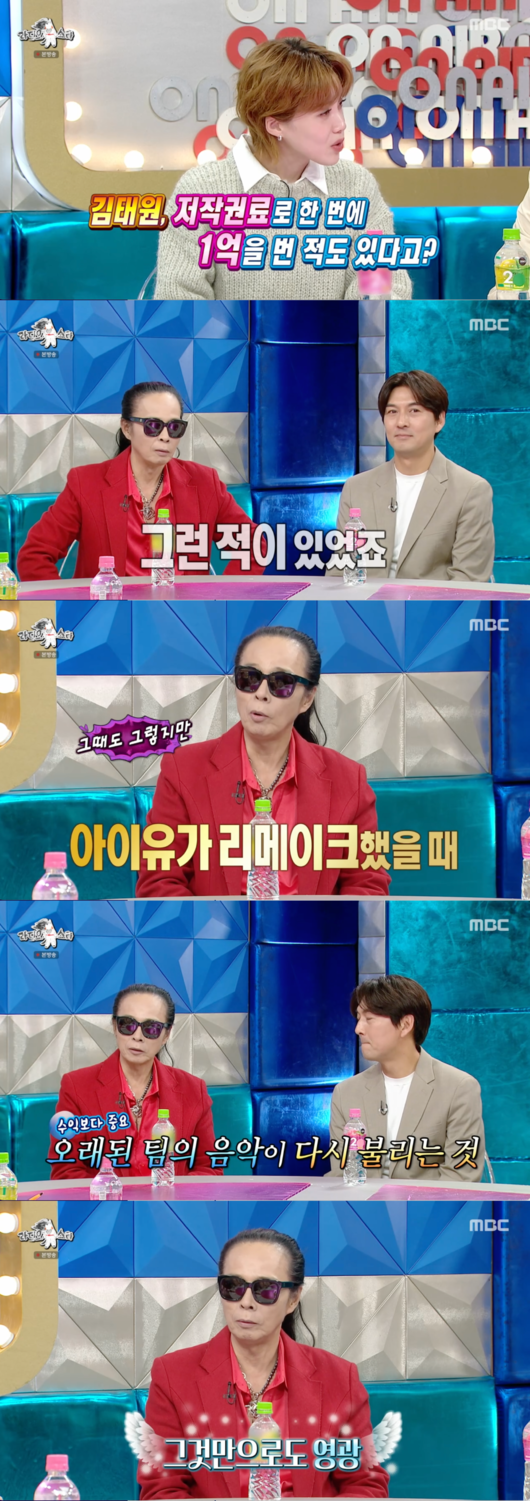 [OSEN=박근희 기자] '라디오스타’ 밴드 부활의 리더 김태원이 가수 아이유의 리메이크 이후 거둔 역대급 저작권 수입을 공개했다.