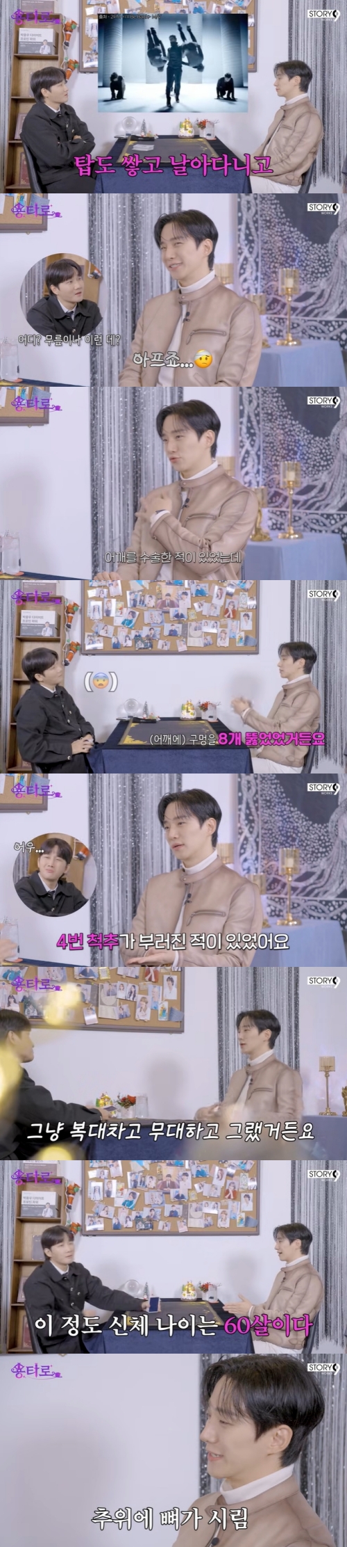 이어 "그때는 그냥 복대차고 무대를 했다. 너무 부상을 많이 입어서 병원을 갔는데 '이정도 신체 나이는 60살'이라고 하더라. 데뷔 때 60살이라는 얘기를 들었다"고 털어놨다.
