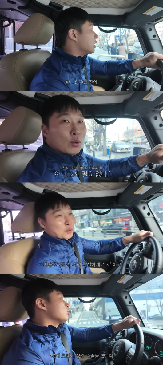 그는 “당시 의사 선생님이 복원 수술을 하더라도 매년 임신 가능성이 10%씩 줄어든다고 경고했다. 수술 후 5년이 지나 복원하면, 성공 확률이 50% 정도라고 하더라”고 설명한 뒤 “수술 후 6~7년쯤 지났을 때, 그니까 2~3년 전에 생각이 바뀌었다”고 말했다.