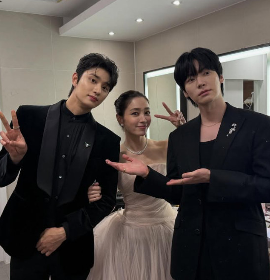 이민정이 자신의 사회관계망서비스(SNS) 계정에 '맨날 장화 신고 흙에서 보다가 시상식에서 보니 적응 안 되는 가오정 팀 붐 김정현 어딨어'라는 글과 함께 배우 안재현, 김재원과 대기실에서 찍은 사진을 여러 장 게재했다.