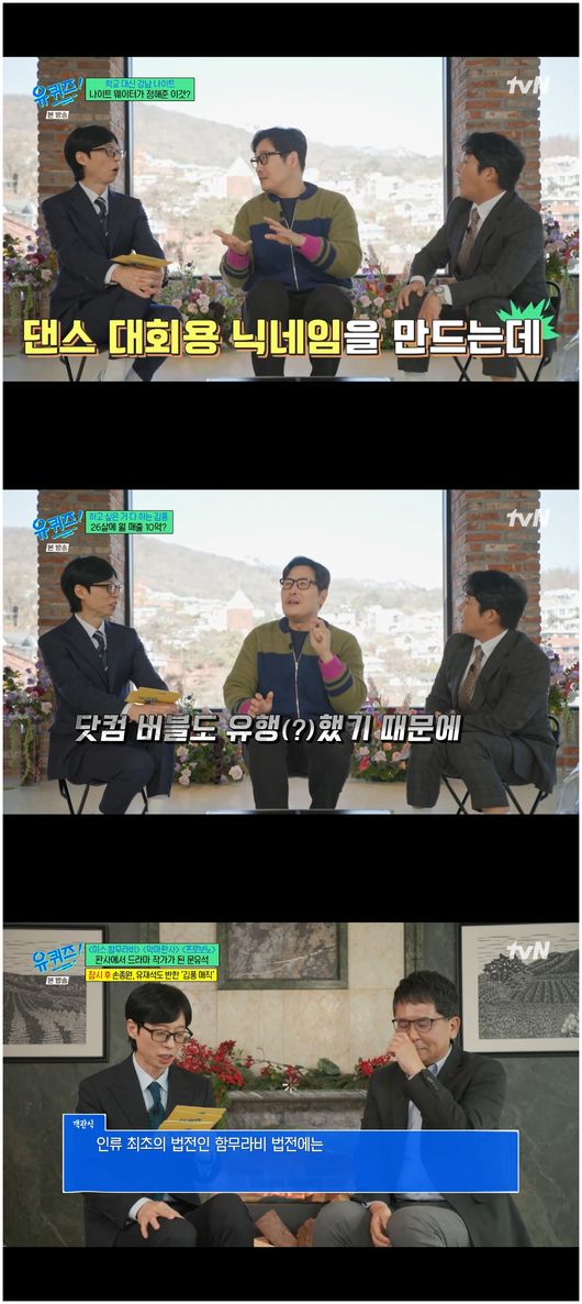 문득 유재석은 문유석 작가의 퀴즈 타임에 “혼자 북 치고 장구 치는 유퀴즈! 제가 퀴즈도 낸다”라고 말해 시선을 끌었다./osen_jin0310@osen.co.kr
