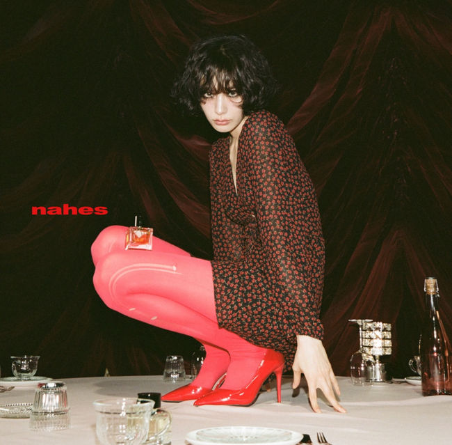 이날 나나는 매력적인 단발 펌에 몸을 꼭 죄는 붉은 무늬의 원피스 그리고 긴 다리를 감싸고 있는 붉은 스타킹에 붉은 힐을 신었다. 나나가 누워 있는 공간은 레드 벨벳이 깔린 곳으로, 계단과 바닥까지 생각하면 평면이 아니란 점에서 보통의 비율은 구겨지기 마련이었지만 나나는 붉은 색을 한층 살림과 동시에 자신의 비율까지 완벽히 뽐냈다.