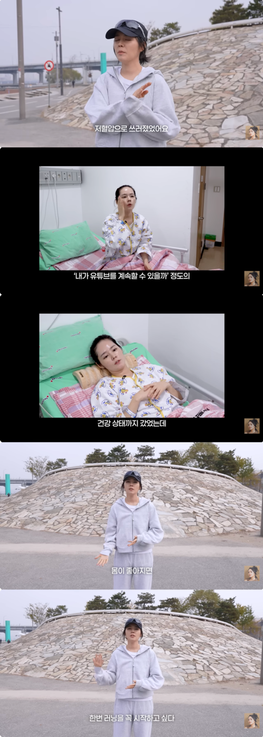 한가인은 한해 인사를 전하며 "사실 촬영일을 기점으로 딱 1년 전, 저혈압으로 쓰러졌었다"라고 혔다. 그녀는 당시 상황에 대해 "‘내가 과연 유튜브를 계속할 수 있을까 정도의 건강 상태까지 갔다"며 심각했던 위기 상황을 회상했다. 이어 몸이 좋아지면 가장 먼저 하고 싶었던 버킷리스트가 바로 러닝이었다라고 전했다.