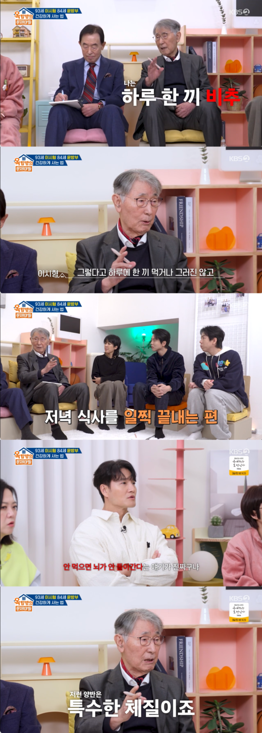 1일 전파를 탄 KBS2 ‘옥탑방의 문제아들’에는 93세, 84세 나이에도 여전히 현역으로 활동 중인 대한민국 의학계의 두 거장, 이시형 박사와 윤방부 박사가 출연했다.