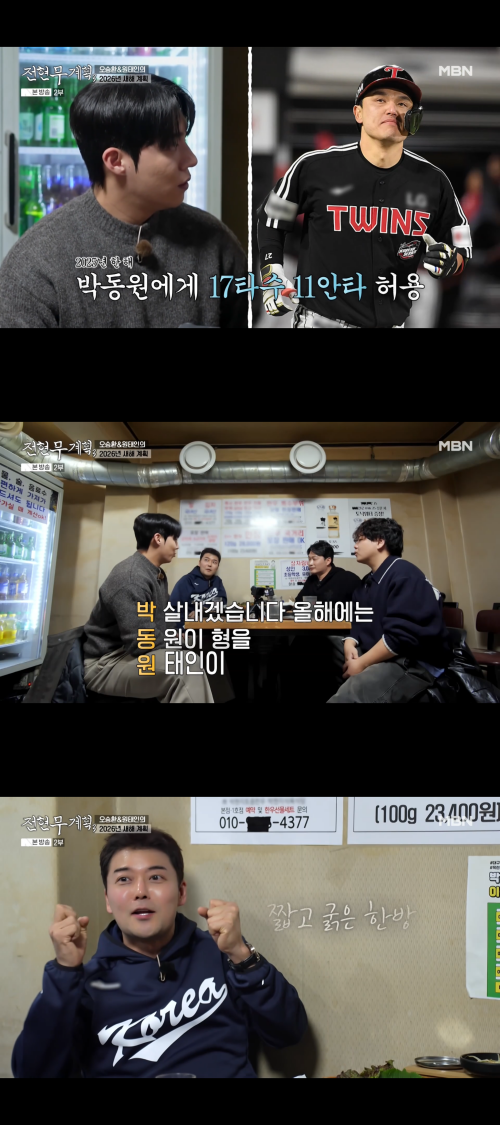 이날 전현무는 원태인을 향해 “우승으로 가는 가장 큰 걸림돌이 박동원 아니냐”고 운을 뗐다. 실제로 원태인은 2025시즌 박동원을 상대로 17타수 11안타를 허용한 바 있다. 이에 오승환도 “맞다”며 고개를 끄덕여 분위기를 달궜다.