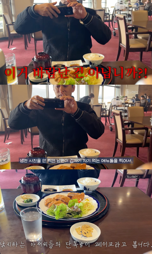일본으로 여행을 떠난 두 사람이 밥을 먹던 중 주진모가 음식 사진을 찍자 민혜연은 “이거 바람난 거 아니냐”고 한 마디 했다.
