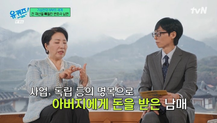 그는 "나중에 자식과 전화 통화를 해서 들어보니까 남편이 너무 억울해했다더라. 남편은 '왜 내가 지금까지 일군 재산을 아내에게 줘야 하나'라고 했다. 나중에는 사실을 알고 남편이 자식들과도 절연했다고 하더라"고 알렸다.