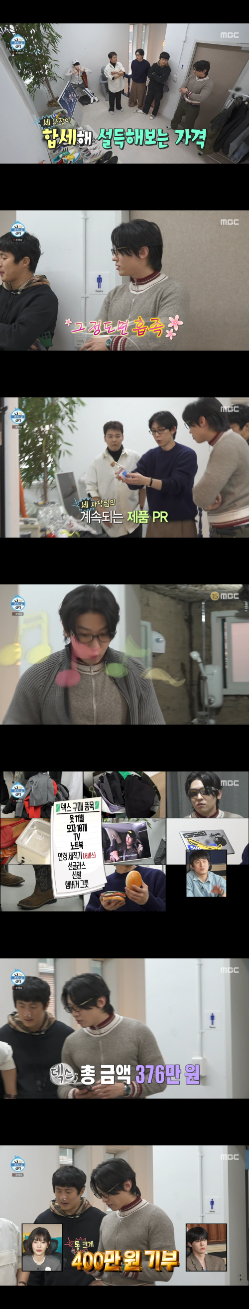 평소 물건을 잘 사지 않는다고 밝혀온 덱스는 이날 기부 취지에 공감한 듯 옷과 모자, TV, 노트북, 선글라스 등 다양한 아이템을 고르며 순식간에 바자회의 큰손으로 떠올랐다. 덱스가 고른 물품의 총액은 376만 원이었고, 그는 “좋은 일에 쓰는 거라서”라며 통 크게 400만 원을 입금해 박수를 받았다.