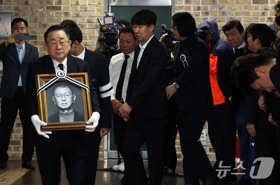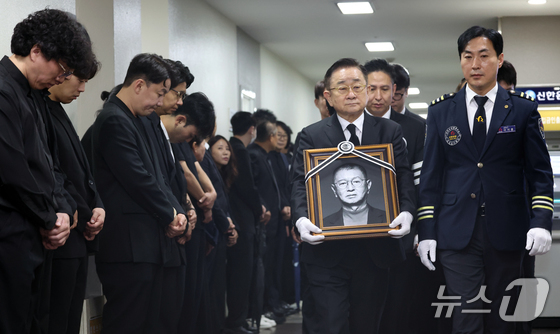 국민배우 이순재가 91세를 일기로 별세한 가운데, 27일 오전 서울 송파구 아산병원에서 열린 영결식이 엄수되고 있다. 이순재는 지난해 연극 '고도를 기다리며를 기다리며'를 마지막으로 활동을 중단하고 건강 악화로 재활 치료를 받던 중 사망 소식을 전해 안타까움을 자아내고 있다. (공동취재) 2025.11.27/뉴스1 © News1 김명섭 기자