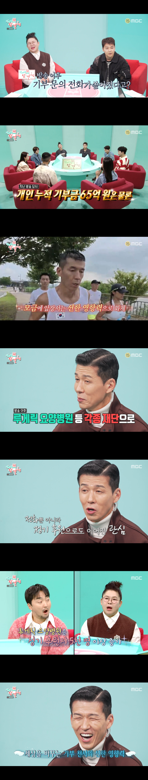 방송 중 전현무는 “션이 출연한 이후 기부 관련 문의 전화가 쇄도했다는 이야기가 있다”고 언급했고, 션은 이를 인정하며 구체적인 수치를 공개했다. 그는 “루게릭 요양병원을 포함해 여러 병원에서 연락이 왔다”며 “전화 문의뿐 아니라 실제 정기 후원으로 이어진 경우가 많았다”고 설명했다.