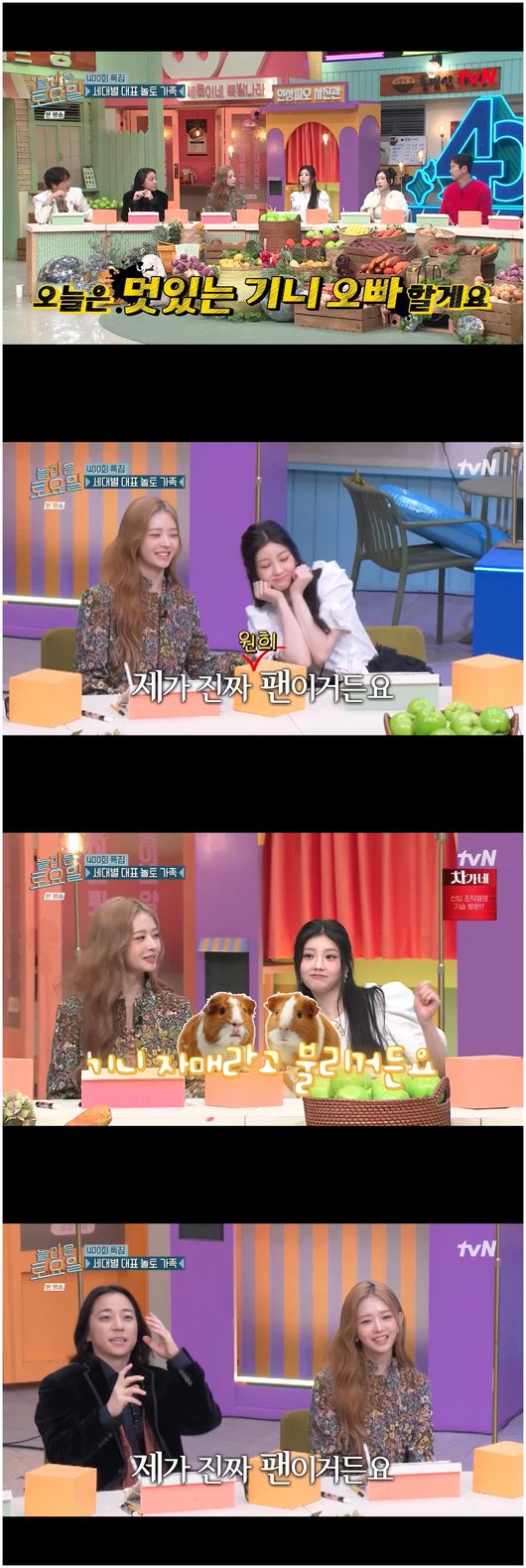 레이는 “제가 진짜 원희 팬이다. 저희가 기니피그 동물 닮았다고 원희랑 기니 자매라고 한다. 기니, 아니 원희 나온다고 해서”라며 김동현에서 원희를 향한 바뀐 팬심을 전했다. 이들은 기니 자매라며 귀여운 느낌을 뽐냈다. 원희는 “오늘은 안 귀여운, 진짜 멋있는 기니 오빠 할 거다”라며 멋진 모습을 예고했다.