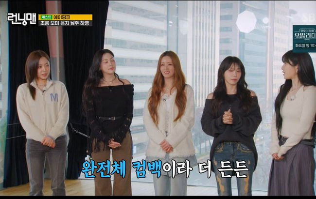 [OSEN=김수형 기자]'데뷔 15주년을 맞아 ‘Love Me More(러브 미 모어)’로 돌아온 에이핑크(박초롱·윤보미·정은지·김남주·오하영)가 런닝맨에 출연해 반가운 웃음을 안겼다. 에이핑크의 ‘런닝맨’ 완전체 출연은 무려 7년 만이다.