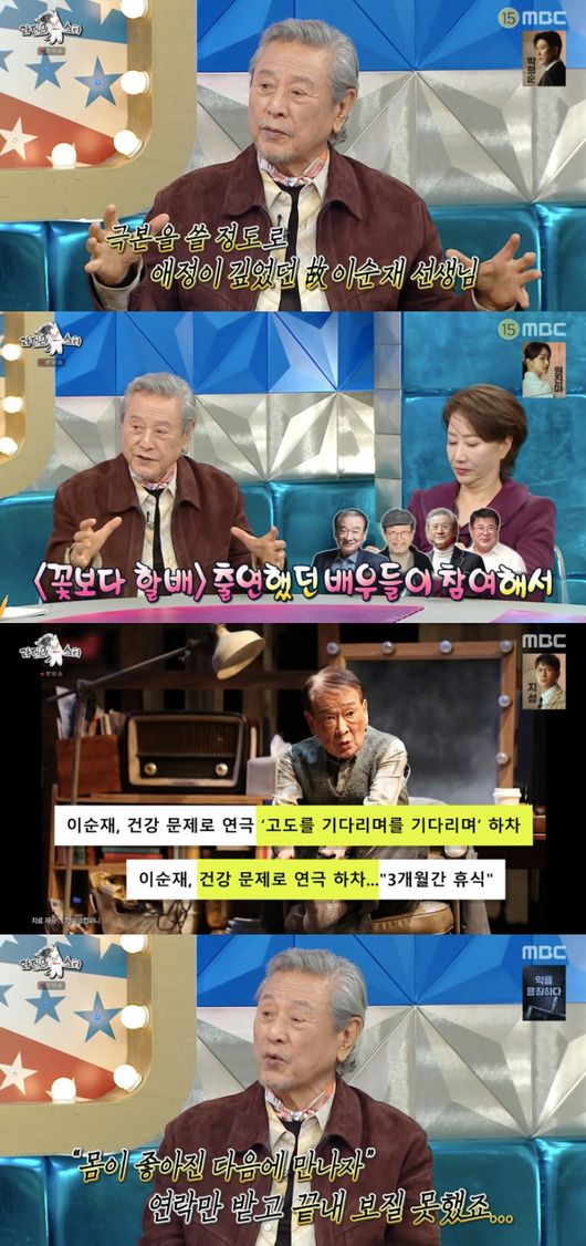 [OSEN=박하영 기자] ‘라디오스타’ 박근형이 故 이순재를 그리워했다.