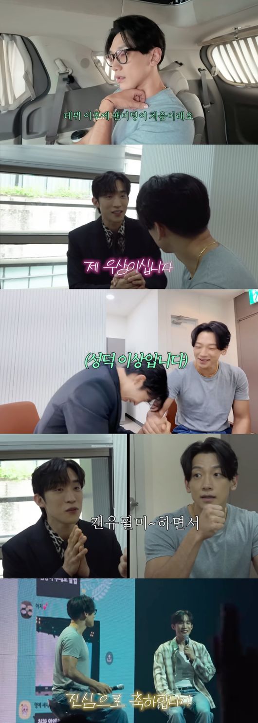 15일 유튜브 채널 '시즌비시즌'에서는 '드디어 이상이에게 싸인 CD를 주러 온 정지훈'이라는 제목의 영상이 게재됐다. 공개된 영상에서는 비가 절친한 후배 연기자 이상이의 생애 첫 팬미팅에 깜짝 게스트로 방문했다.