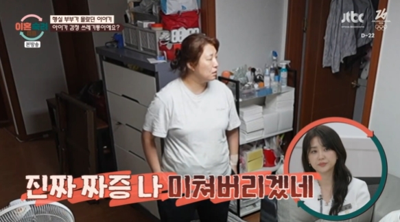 '행실부부'는 넷째 딸 앞에서 또 부부 싸움을 시작했다. 남편은 "공격적으로 말하지 말라"라며 "애 앞에서 소리 지르지 말라"라고 목소리를 높였다. 남편이 나가자 아내는 딸에게 짜증내고 다그쳐 눈살을 찌푸리게 했다.