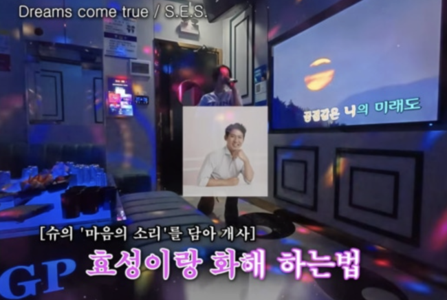 일정을 마친 뒤 지인들과 식사를 하며 술자리를 가진 슈는 얼굴이 붉어진 채 노래방으로 향했다. 현지 통역사가 S.E.S 메들리를 요청하자 슈는 “중국까지 와서 S.E.S 노래를 불러야 하냐. 여기까지 와서 춤까지 춰야 하냐”며 주저했지만, 이내 마이크를 들고 ‘감싸 안으며’, ‘너를 사랑해’, ‘Dreams come true’를 연이어 열창해 분위기를 띄웠다.