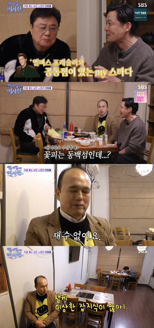 한편, 남진은 “편안하고 반가운 느낌? 비서 역할을 해주는 게 성의가 있다. 해줘야 되니까 하는 거 하고 편안하고 정겨운 거 하고 다 느끼지 안한. 진정으로 하는 게 보이니까 부족하든 어떻든 관계없이 흐뭇했다”라며 “다음에 시간이 있으면 또 왔으면 좋겠다”고 ‘비서진’에 대한 만족감을 드러냈다.