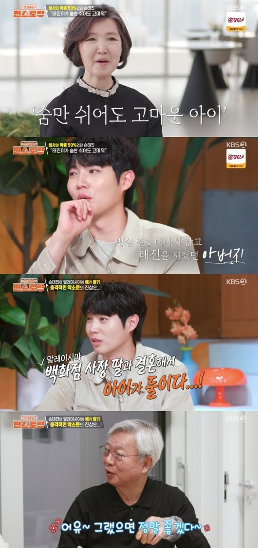 한편, 손태진은 자신의 가짜뉴스에 대해 입을 열었다. 그는 “부모님이 말레이시아에 사시니까 말레이시아 관련된 키워드로 백화점 사장 딸과 결혼해서 아이가 둘이라고 하더라. 어느정도 사실들을 사이사이 넣으면서 하니까 사람들이 믿는다”라고 토로했다.