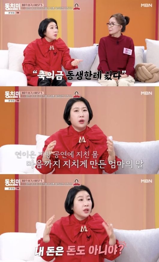 갈등은 여기서 끝이 아니었다. 김영희는 “최근 남동생이 결혼했는데, 엄마가 은근히 ‘축의금을 동생한테 다 줬다’고 하시더라”며 “나는 지방 공연 다니면서 몸은 몸대로 지치고, 빚도 갚고 있는 상황이었다. 그 말에 결국 폭발했다”고 말했다.