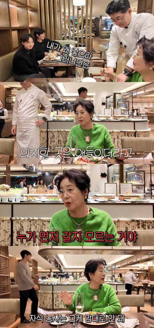 이날 선우용여는 제작진과 함께 갖는 회식을 가졌다. 그런 가운데 제작진 부부가 자녀가 없다는 말에 선우용여는 “내가 왜 애 낳으라고 하냐면 지금은 자기네끼리 잘 사니까 행복하다 그러는데 나같이 80 넘으면 의지할 곳이 애들이다. 누가 먼저 갈지 모르는 거다”라며 아이의 중요성을 강조했다.