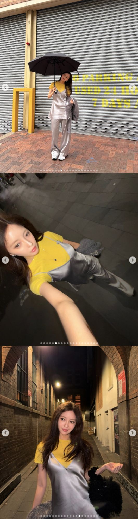 공개된 사진 속 효민은 시드니에 위치한 천문대 공원에서 돗자리를 깔고 앉아 노을 하늘을 바라보고 있다. 노란 티셔츠에 편안한 팬츠를 매치한 내추럴한 스타일링으로 꾸밈없는 매력을 드러낸 모습이다.