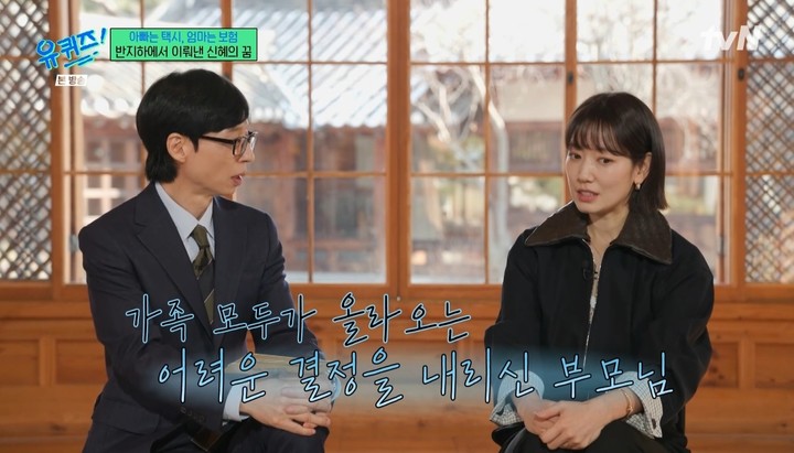 유재석은 "연고도 없는 서울에 가족 모두가 올라와서 생활을 하는 것은 진짜 어려운 결정"이라며 감탄했다. 박신혜는 "지금도 엄마에게 감사드린다. 여장부 같은 스타일이다"라고 애정을 드러냈다.