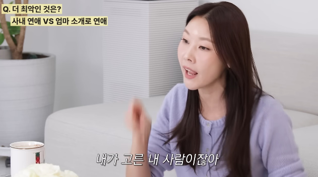 그는 "사내연애는 결말이 최악이어도 혹은 과정이 최악이어도 내가 고른 내 사람이잖아"라고 사내연애에 대한 소신을 밝혔다. 그러면서 "근데 엄마가 나에 대해서 뭘 알아서. 아니 당연히 많이 알지만 엄마의 취향과 내 취향이 같을리가 없지 않나. 엄마 취향과 내 취향은 갈린다. 우리 아빠를 보면 알수 있다"라고 발끈해 웃음을 자아냈다.