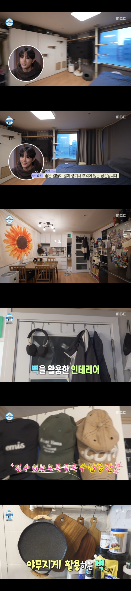 특히 시선을 사로잡은 것은 ‘벽 수납’이었다. 배나라는 벽에 걸 수 있는 것은 모두 걸어 활용하는 방식으로 공간 효율을 극대화했다. 벽을 적극적으로 활용한 수납 인테리어는 깔끔하면서도 실용적인 분위기를 자아냈다.