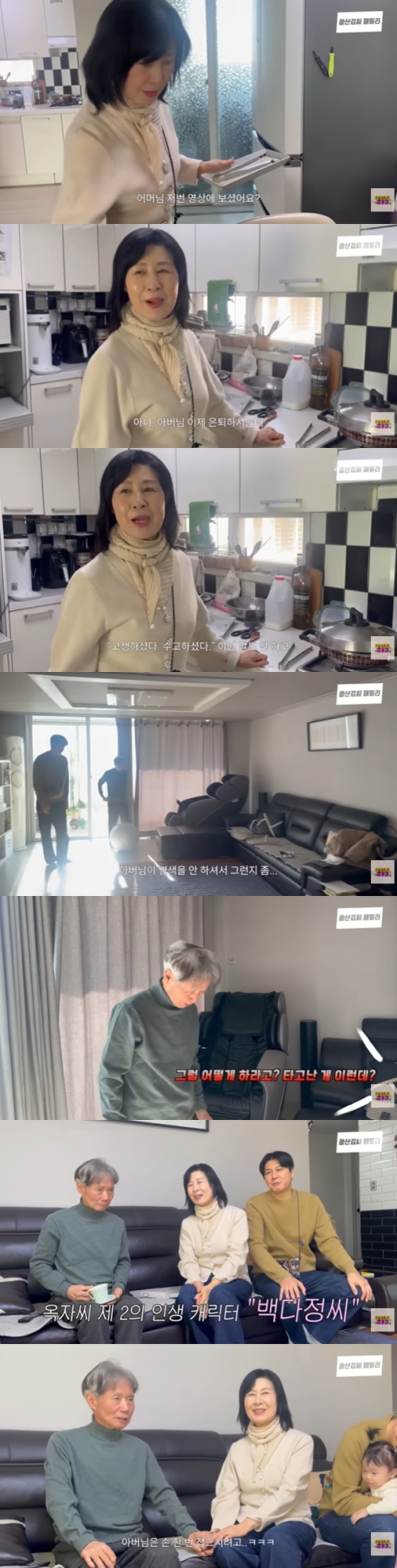 김승현의 아내 장정윤 작가는 "어머니 저번 영상 보셨냐. 아버님 은퇴하는 영상 유튜브에 올라갔는데 댓글 보셨냐?"고 물었고, 시어머니 백옥자는 "댓글 안 좋게 나왔냐. 욕했냐"고 걱정했다. 장정윤 작가는 "아버님 이제 은퇴하시는데 '고생하셨다', '수고하셨다'는 말도 안 하고, 어머님이 '그럼 앞으로 돈은 어떻게 하냐?'부터 말해서 (사람들이) 그걸 뭐라고 했다"고 밝혔다.