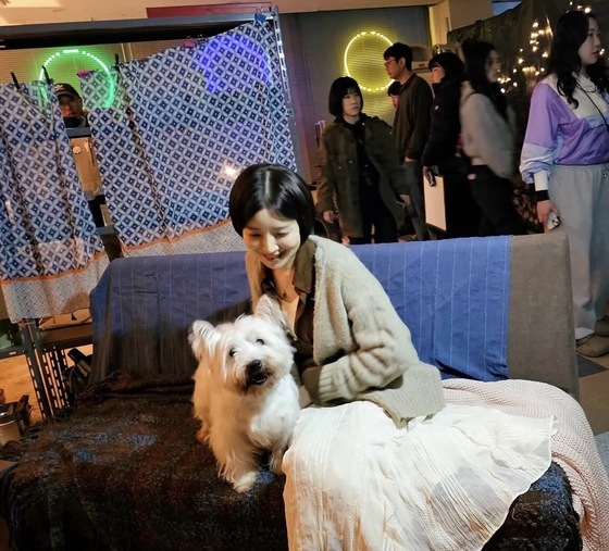 배우 윤세아가 JTBC 금요시리즈 '러브 미' 촬영 현장에서 반려견 '봄이'와 함께한 순간을 공개했다.