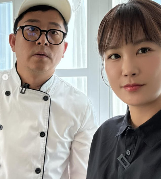 사진에서 김지민과 김준호는 넷플릭스 인기 예능 '흑백요리사: 요리 계급 전쟁2'(이하 '흑백요리사2')의 '흑수저' 술 빚는 윤주모와 우승자 최강록으로 각각 변신한 모습이다. 두 사람은 각자 캐릭터를 '빚 있는 김주모'와 '최양록'으로 패러디해 웃음을 안긴다. 특히 김준호는 최강록과 똑닮은 비주얼로 폭소를 자아낸다.
