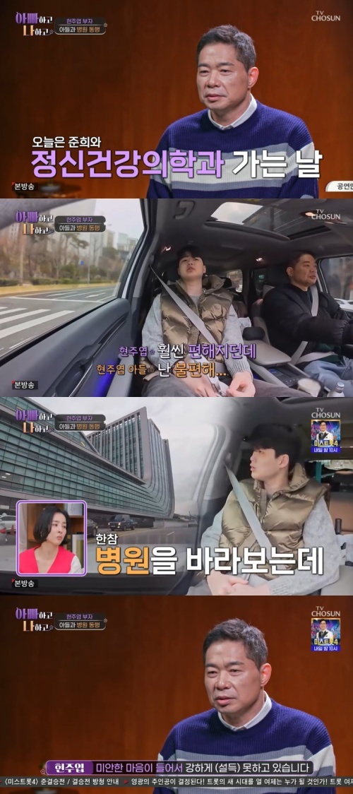 그가 인터뷰에서 속마음을 고백했다. "병원에 도착하니까 옛날에 안 좋은 기억이 떠올랐다. 답답해서 안 들어갔다"라고 밝혔다. 이에 대해 현주엽은 "강하게 밀어붙이고 싶지만, 병원 가는 게 내 탓 같아서 미안한 마음에 못 밀어붙이고 있다"라고 해 안타까움을 더했다.