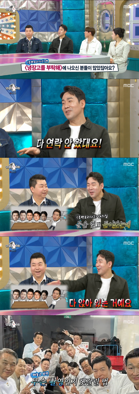 샘킴은 “사실 촬영 전부터 ‘냉장고를 부탁해’ 셰프들이 많이 언급되지 않았나. 그래서 슬쩍 ‘연락 왔어요?’라고 떠봤는데, 다들 하나같이 연락 안 왔다며 손사래를 치더라”고 당시 상황을 회상했다.