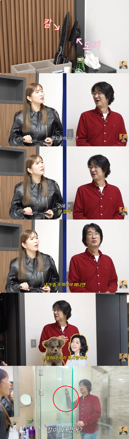 장영란은 집안 곳곳 방마다 칼이 구비되어 있는 것을 발견하고 경악했다. 심지어 무방비 상태인 샤워실 부스 안에도 칼이 놓여있어 모두를 깜짝 놀라게 했다.