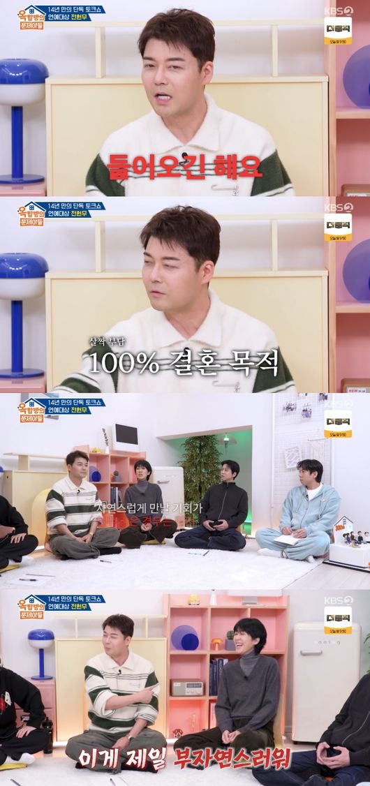 전현무는 “들어오긴 하는데 제가 잘 안 나간다. 불편하다. 그분들은 제가 누군지 다 알고 나오지 않나. 100% 결혼하려고 오는 게 부담이 있어서 자만추 하고 싶다”고 밝혔다.